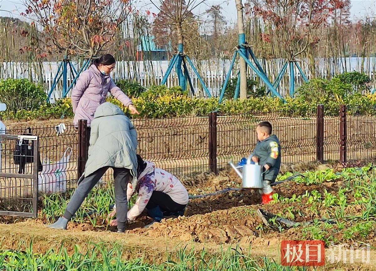 12月18日,武汉市蔡甸花博汇公园内,几家人正带着孩子给地里的蔬菜松土浇水施肥。据张师傅介绍,他周末一般都会带孩子到田里劳作一番,这样既能享受大自然,又能让孩子体验务农的辛苦,到收获的季节还能吃上自己种的放心菜。