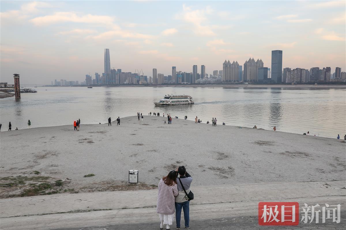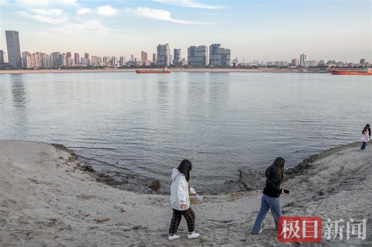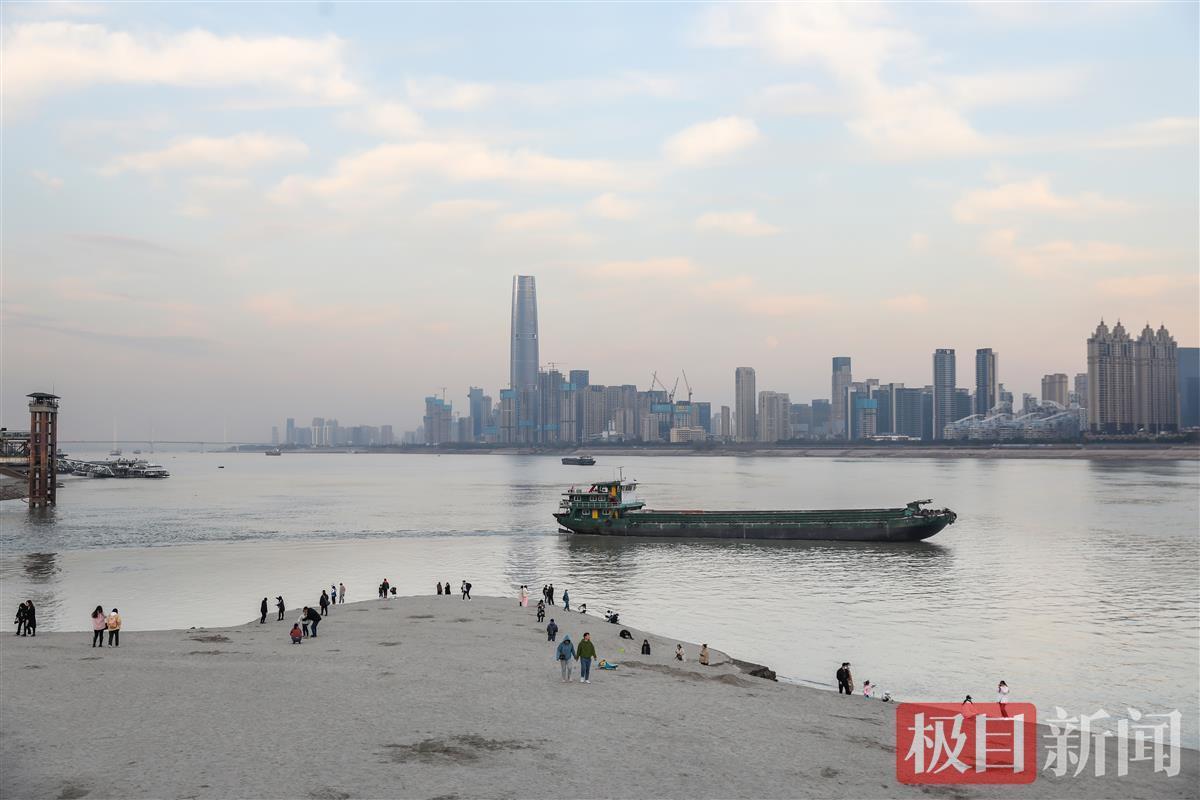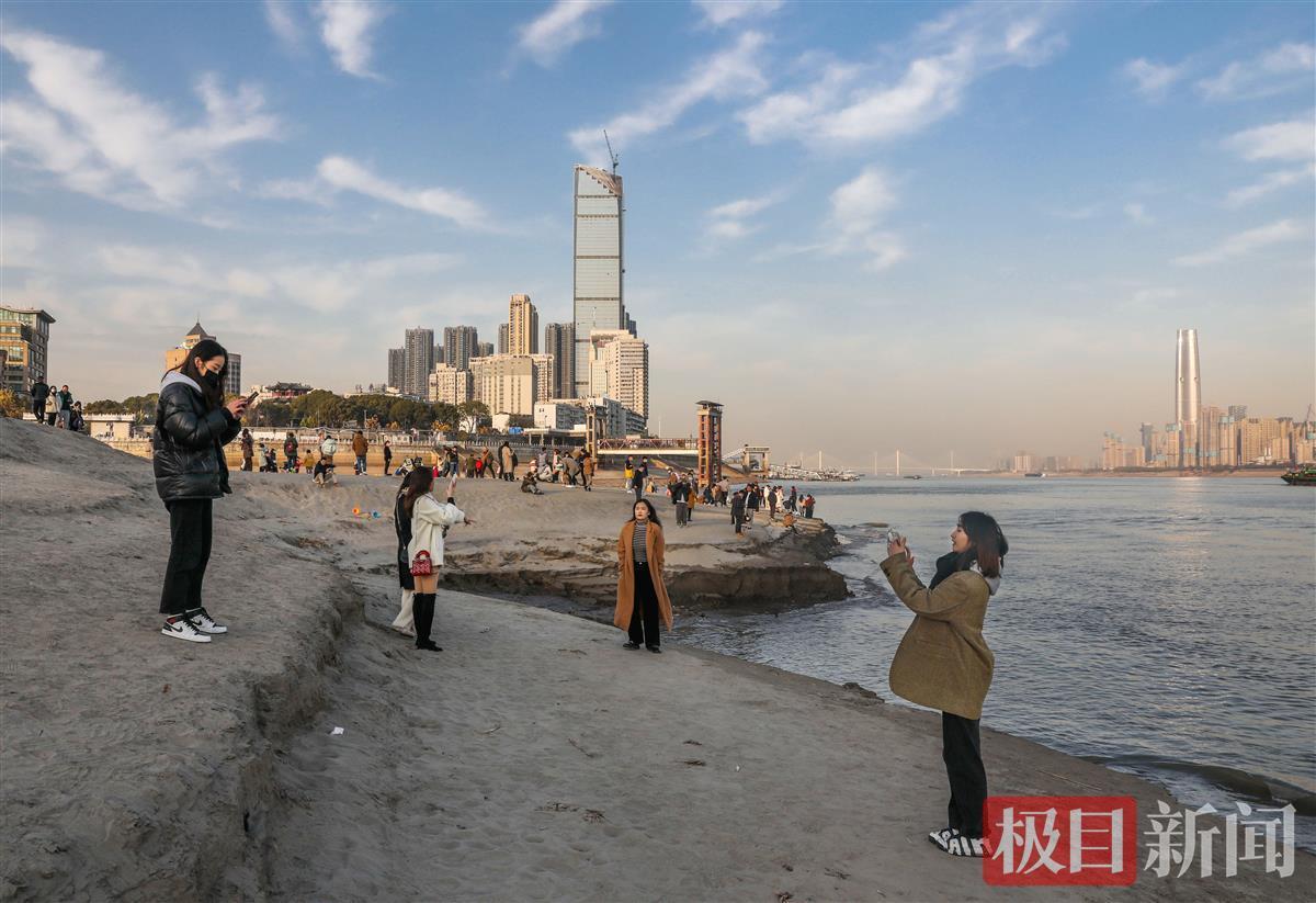 近日长江水位正处枯水期,江面水位较低,南岸嘴公园的滩涂尽显无余,形成大片大片的沙滩,从江堤边,一直向江心蔓延。白沙净水,如同身处海边。许多市民趁着天气晴好,携亲带友前往游玩拍照,俨然成了一处网红打卡地;有的小朋友在爸妈的带领下高兴地挖着沙,在沙滩上留下一个个小脚印。