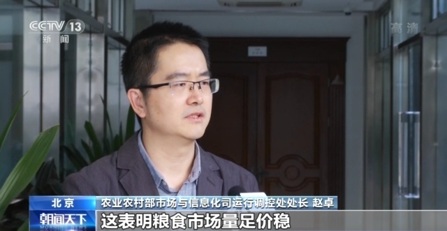农业农村部市场与信息化司运行调控处处长 赵卓:这表明,粮食市场量足价稳,对于保持我国居民消费价格总水平的基本稳定,持续发挥着“定盘星”作用。
