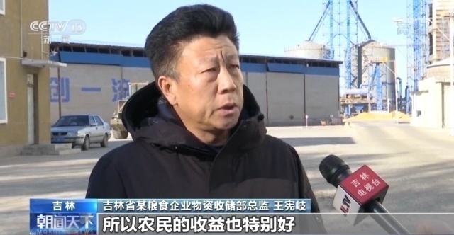 吉林省某粮食企业物资收储部总监 王宪岐:目前购销两旺,产量提高幅度大约在20%左右,所以农民的收益也特别好,我们正在组织全力收购。