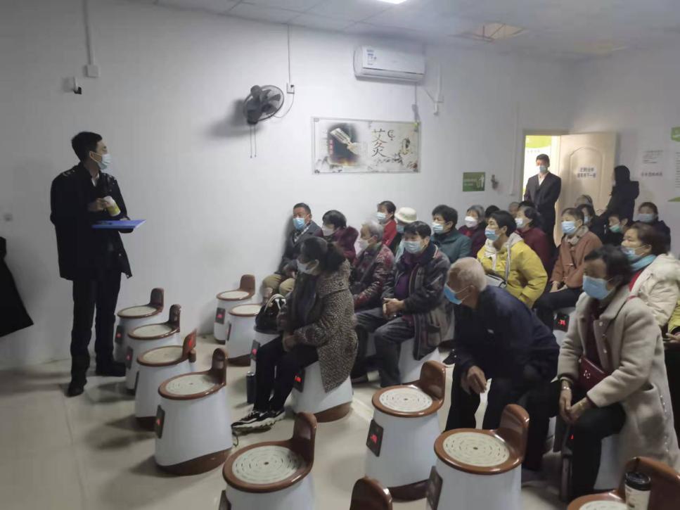 12月6日,东湖高新区市场监管局第八市场监管所接到群众举报,左岭新城某艾灸生活馆宣称其出售的保健品包治百病,癌症也可以治,涉嫌虚假宣传欺骗老年人。八所副所长韩峥立即组织执法人员前往该艾灸馆展开调查。