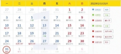 而2022年的腊月恰逢小月,只有29天,因此也就没有大年三十了。
