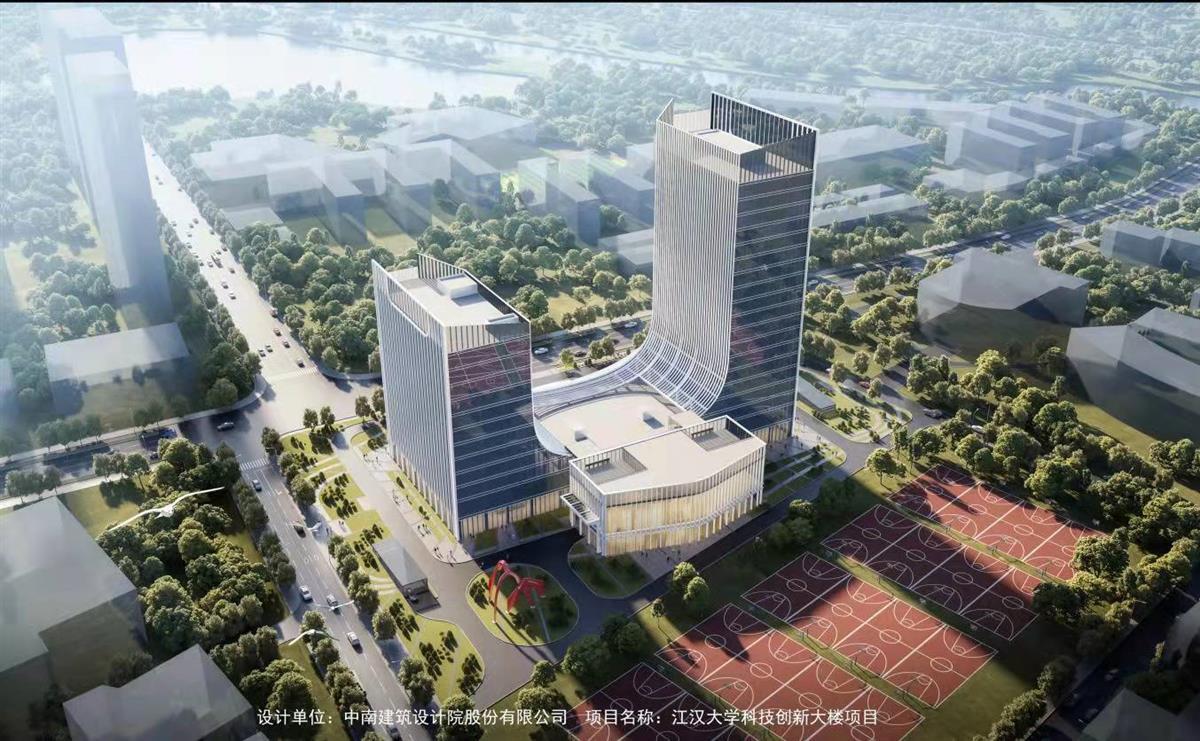 科技创新大楼位于江汉大学校内,西临博学路,紧邻该校体育馆。大楼包括北面19层塔楼和南面11层塔楼,两座塔楼通过2层裙房连接,总建筑面积约71212.57㎡。项目同时建设给排水、电气、地下停车库及设备用房等配套工程,计划于2023年竣工。