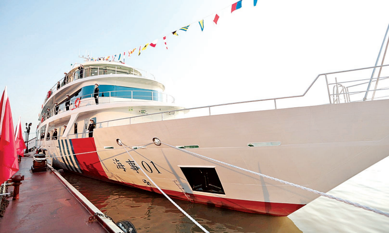 大型综合应急指挥船“海事01”在武汉正式列编长江海事局。