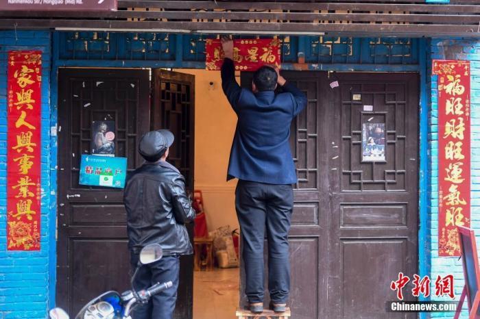 资料图:此前,正值农历除夕,湖南凤凰古城的居民贴春联迎接除夕的到来。中新社记者 杨华峰 摄