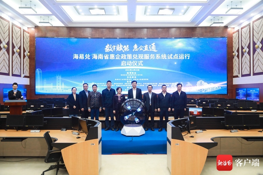 新海南客户端、南海网、南国都市报12月23日消息(记者 姚皓 通讯员 肖亚梅 孙丹 夏兰娣)12月23日,“海易兑”海南惠企政策兑现服务系统(以下简称“海易兑”系统)正式上线试点运行。