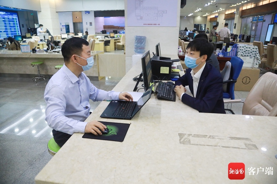 在海南省政务服务中心工作人员指导下,齐鲁制药(海南)有限公司在系统上完成“海南省生物医药产业研发券”事项首单申报。记者 姚皓 摄