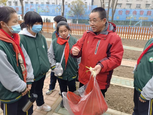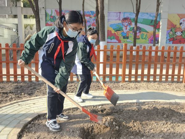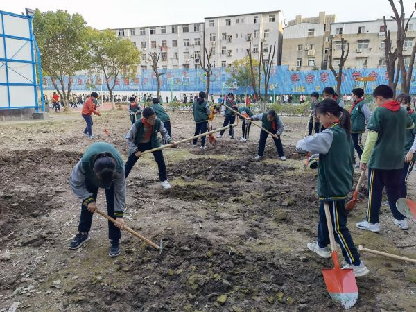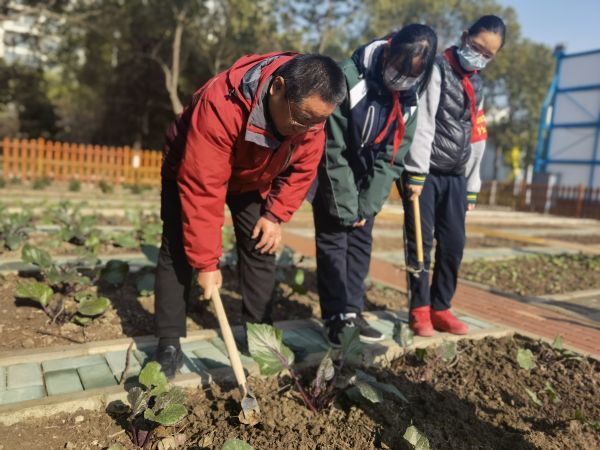 23日上午,大课间时分,冬日暖阳在武汉市汉铁初级中学里撒下一片金黄。躬耕园里,学生们三五成群,在老师的指导下,用铁锹翻土,拿耙子除草根……忙得不亦乐乎。