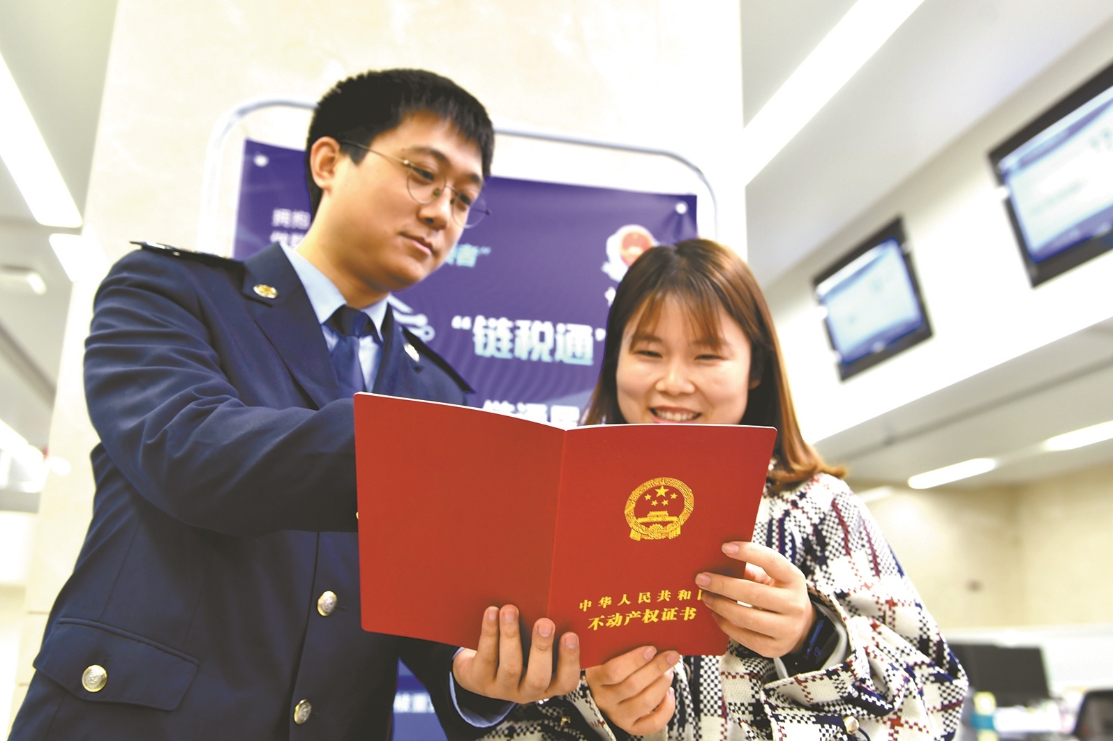 联合多部门创新推出“链税通”——“区块链+不动产”税收治理系统,让市民高效办理不动产登记业务。