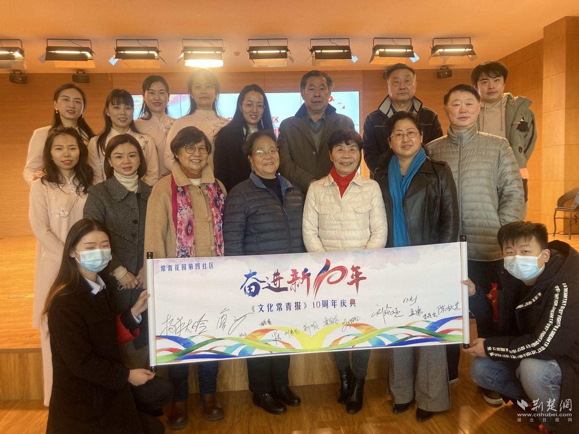 活动现场,常青花园第四社区居民、中共党员、原武汉科技报社长、《文化常青》报总编刘玲娅带领大家回顾了创刊十周年历程。她说道,《文化常青》报是一群自愿担任编辑、排版、作者、摄影、通讯员的社区居民的智慧结晶,通过办报把社区建设情况和居民身边令人感动的人和事让大家了解并广泛宣传,通过他们的努力与付出,到2021年12月已经出刊32期,期期都是满满的正能量,受到居民朋友们广泛好评。