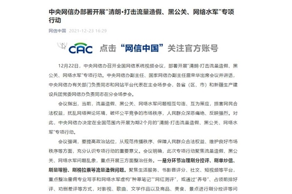 近日开播的两部影视剧接连出现超前点评的荒诞现象。在某知名打分平台的短评打分区,大量评分在原定上线时间前集中涌入,这些短评呈现一星和五星两极分化的状态。22日,中央网信办召开全国网信系统视频会议,决定在全国范围内开展为期2个月的“清朗·打击流量造假、黑公关、网络水军”专项行动。