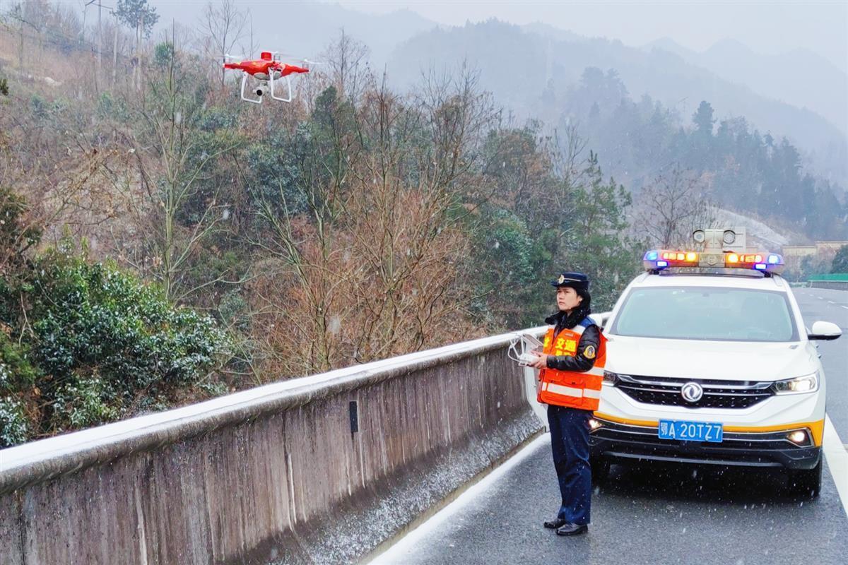 27岁的王梦醒是汉十支队郧十大队路政员,也是湖北高速路政首位女无人机操控员,人称“女飞手”。25日凌晨2时,她发现宿舍窗外雪花飘飘,立刻穿戴整齐。“快起来,我们去看看路面和桥面,万一结冰会对过往的司乘造成很大的危险。”王梦醒打电话叫醒正在睡觉的同事张禹。