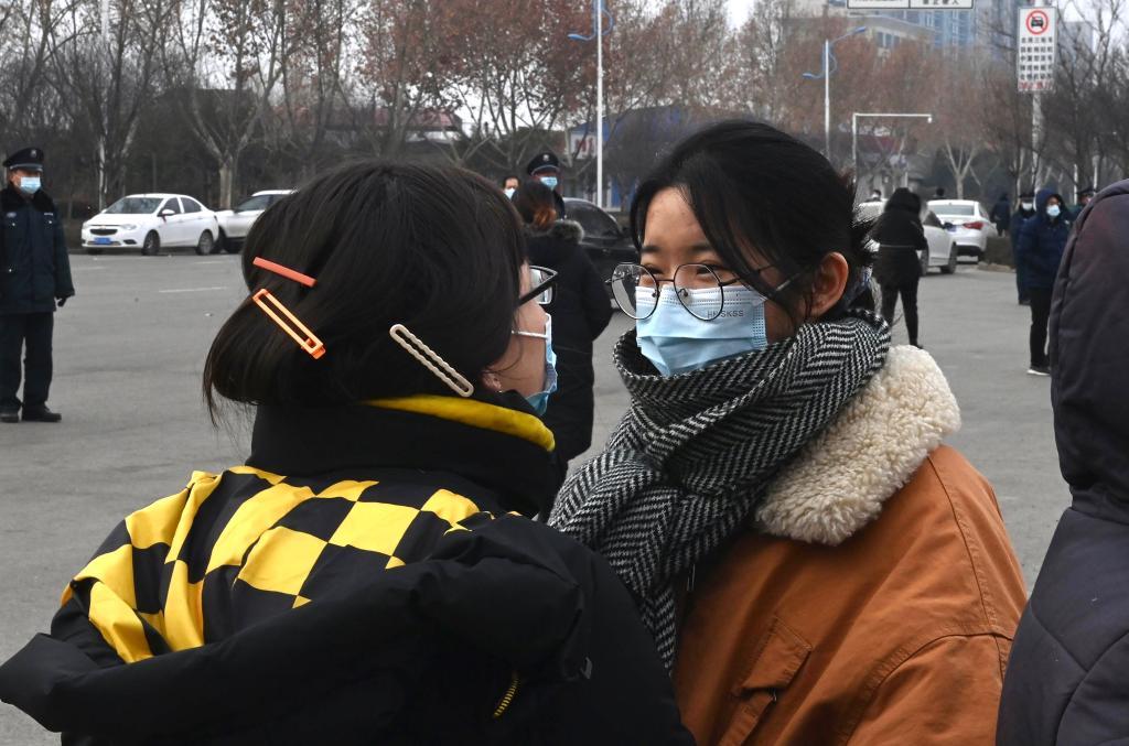 12月25日,在山西省稷山县稷王中学考点,第一场考试结束后,考生正在交流。新华社记者 柴婷 摄