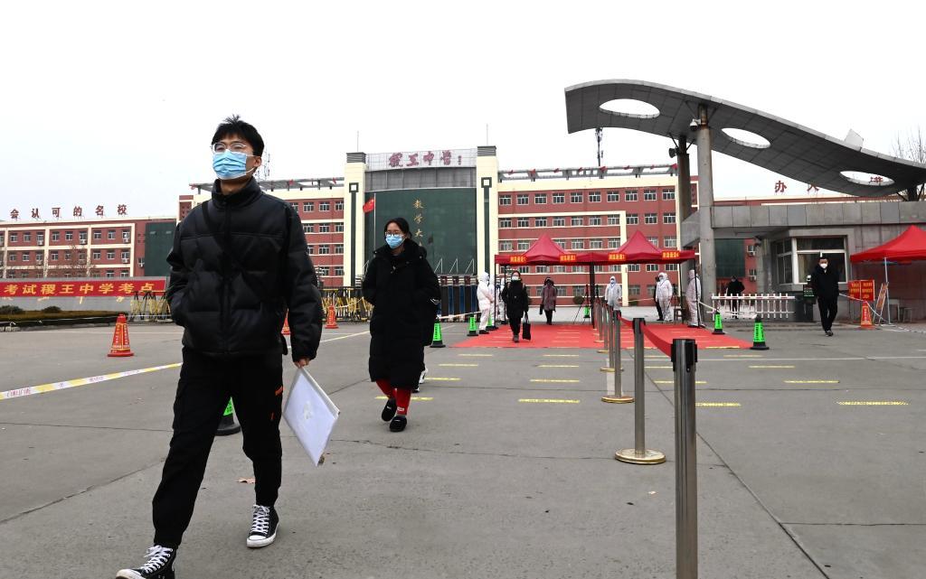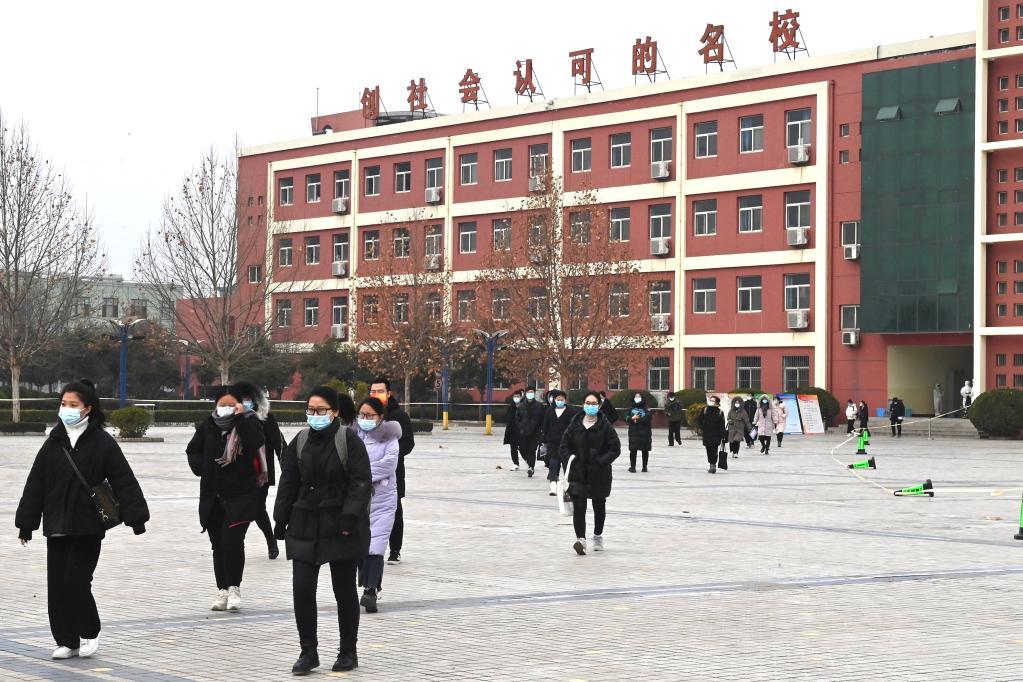 12月25日,在山西省稷山县稷王中学考点考试的考生从考场走出。新华社记者 柴婷 摄