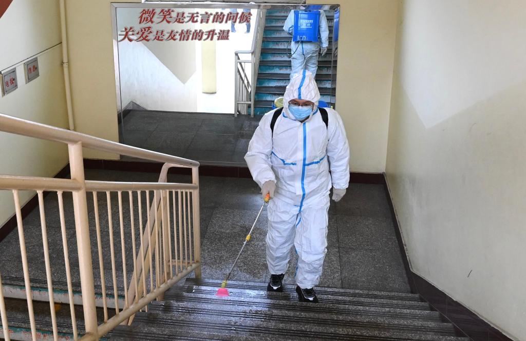 12月25日,工作人员正在山西省稷山县稷王中学考点进行消杀。新华社记者 柴婷 摄