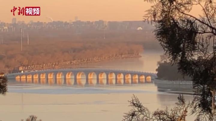 据了解,“金光穿洞”是每年冬至前后,颐和园十七孔桥的桥洞被夕阳照亮的景象,也是这段时间颐和园最受瞩目的景观之一。