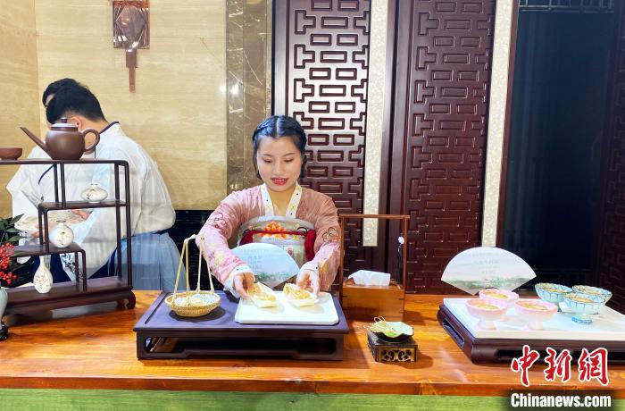 与会嘉宾观摩淮扬小吃制作。 崔佳明 摄