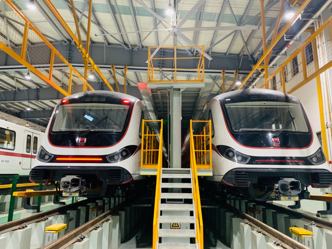 28日凌晨3时30分,寒风凛冽,夜幕中,长江日报记者走进位于青山三环外的5号线工人村车辆段,经过批准,进入列检库。