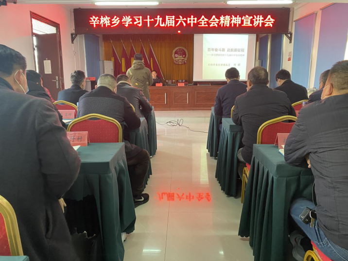 12月22日,学习贯彻党的十九届六中全会精神市委宣讲团走进辛榨乡,为全体乡机关干部、各村(社区)书记及部门负责人共60余人作专题宣讲。