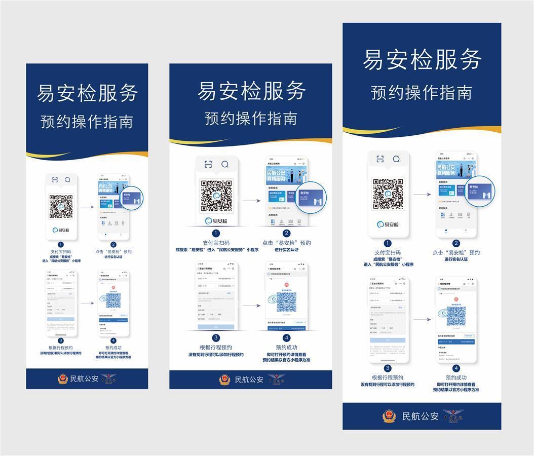 如何预约“易安检”服务?阮贝贝介绍,旅客可以通过国家政务服务平台或支付宝小程序中“民航公安服务”进行“易安检”实名注册认证,也可以在机场现场扫码注册。旅客可以在航班起飞前48小时内随时预约服务,也可在机场临时购票、当场注册、即时预约、立等使用“易安检”服务。除支付宝小程序外,后续还将开通微信小程序、百度等申请入口。