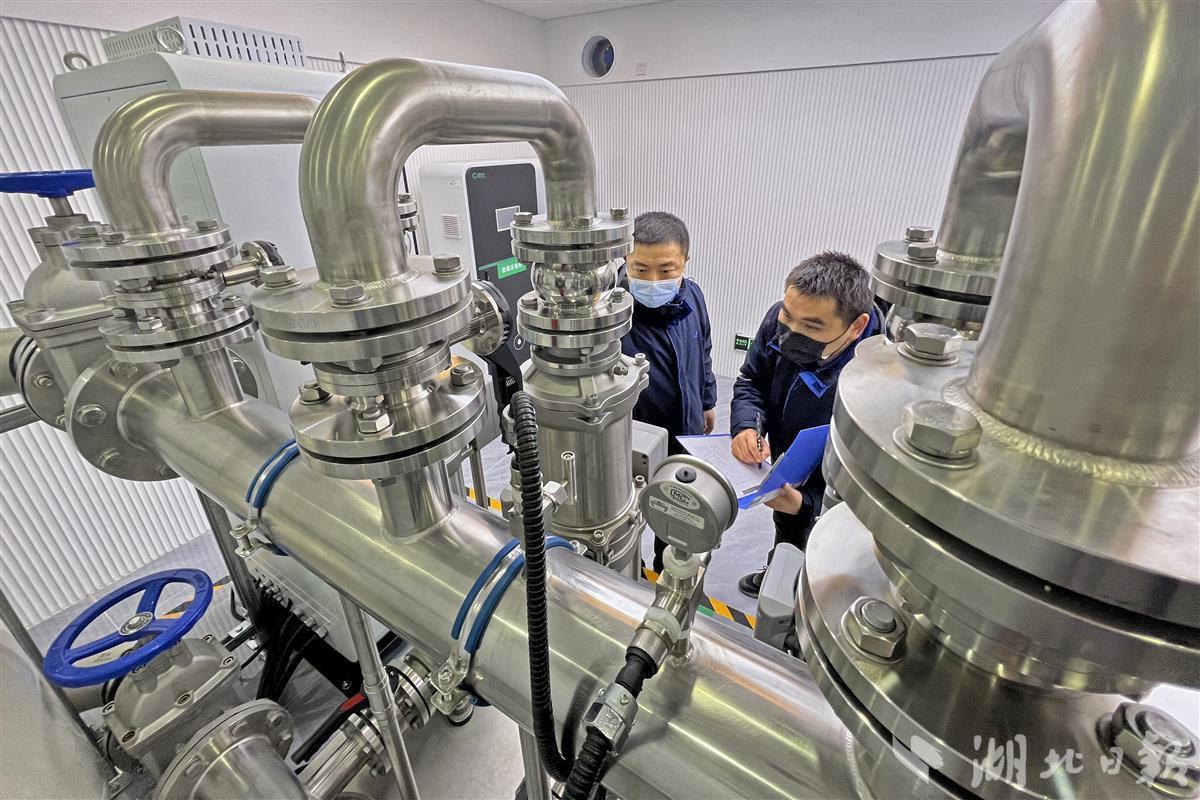 2022年1月4日,在武汉市硚口区天顺园小区九组团新建成的泵房内,工作人员正在对运行设备进行查看。截至去年底,历时3年的武汉市中心城区居民住宅二次供水设施改造工作圆满收官,超额完成原定1160处居民住宅二次供水设施改造任务,累计完成改造任务1200处,共47万户160万人受益。
