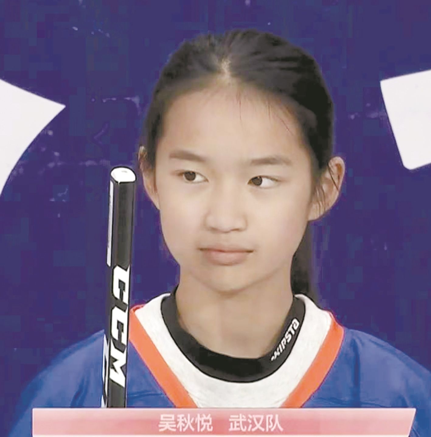这支队伍中仅有的一名女生引起了记者注意。她叫吴秋悦,今年14岁,是武汉枫叶学校805班学生。她从7岁开始接触冰球,几乎每个周末和寒暑假都是在冰场度过。