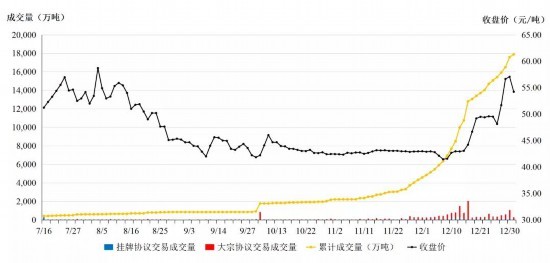 全国碳市场成交量及成交价格情况(2021年7月16日至12月31日)。生态环境部供图