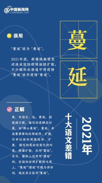 在每年的评选中,《咬文嚼字》杂志社一直遵循着典型性、新闻性、广泛性三个标准,进行年度“十大语文差错”的评选。黄安靖介绍称,2021年,“语文生活”中出现了许多引起社会广泛关注的“热点”事件。