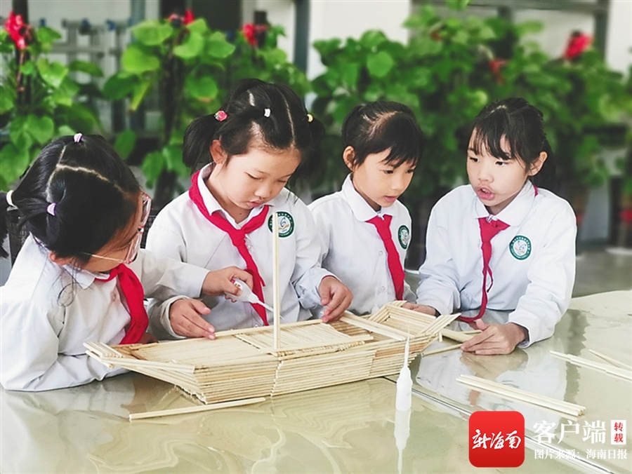 海口市长滨小学学生在上创意手工课