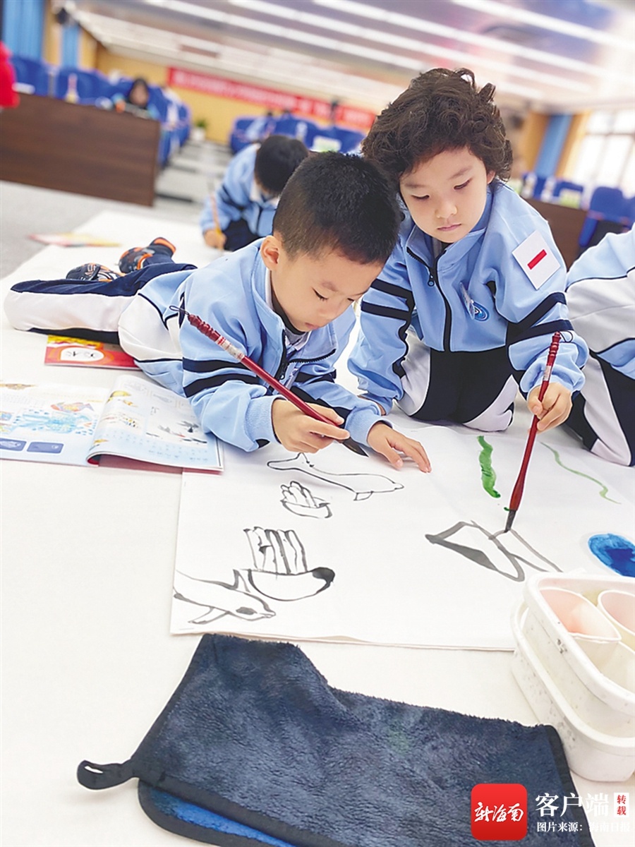 海口市滨海九小美丽沙分校学生学画画