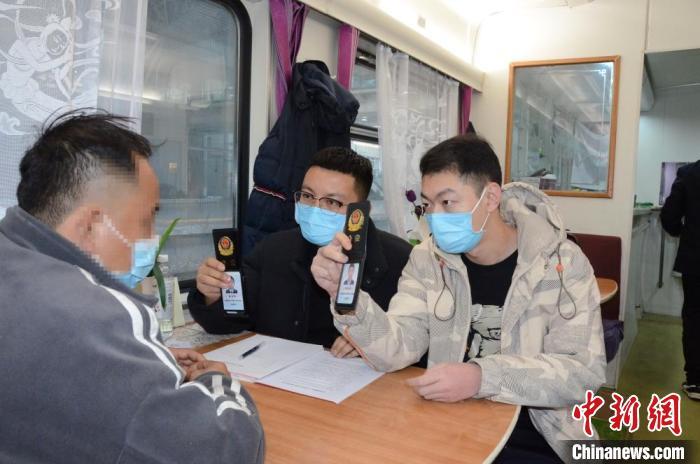 兰州铁路公安处侦查员高应亮、杨鸿志盘问收买男婴的嫌疑人。 兰州铁路公安处供图