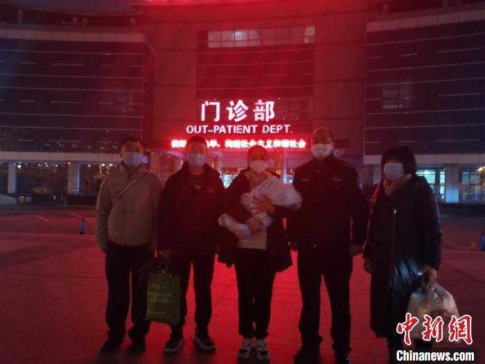 在医院对男婴体检后,兰州铁路公安处民警和当地警方一起将被拐卖男婴移交当地民政部门。 兰州铁路公安处供图