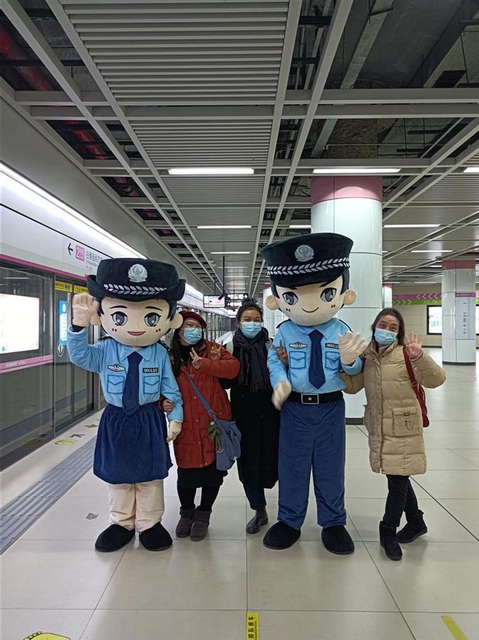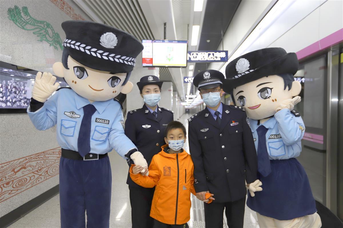 当日上午11时30分许,在2号线洪山广场站站台上,两名由真人扮演的警察卡通人偶“荆小平”、“楚安安”吸引了众多乘客的目光。