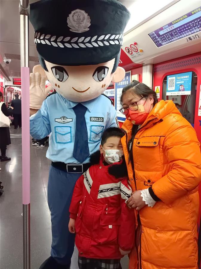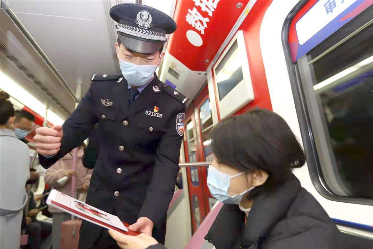 1月10日是第二个人民警察节,湖北省公安厅联合武汉地铁集团,在武汉市人流量最高的地铁2号线开设“中国人民警察节·平安湖北”安全专列,设置反诈、交警、110报警、公安政务一网通办等6节主题宣传车厢。“平安湖北”卡通代言人“荆小平”“楚安安”以及基层一线民警,登上专列与乘客实时互动,创新宣传各类安全常识,获得众多乘客好评。
