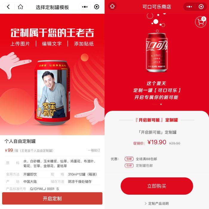 对比其他品牌定制产品,王老吉一箱起订的门槛不低。以可口可乐为例,其小程序上的个性定制罐可一罐起订,但价格高达19.9元/罐。而在网购平台上,非官方的可口可乐定制罐价格在5元/罐左右,多买还赠送礼盒灯串。