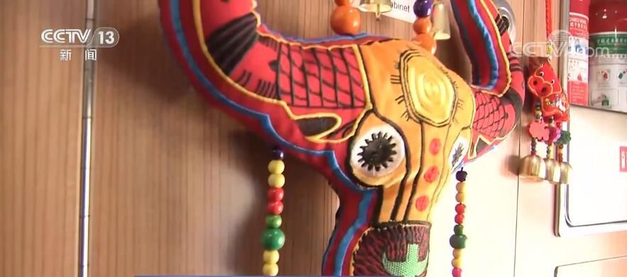 在这辆开进大凉山的动车上充满了彝族元素,车窗、车门等位置均贴有彝族文化特色吉祥物“绿墩墩”和彝族脸谱等,列车还推出了普通话、英语、彝语三语服务,为沿线百姓的出行提供便利。