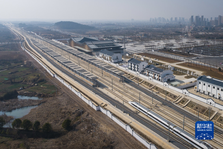 2021年12月30日,京港高铁安庆至九江段开通运营(无人机照片)。新华社记者 肖艺九 摄