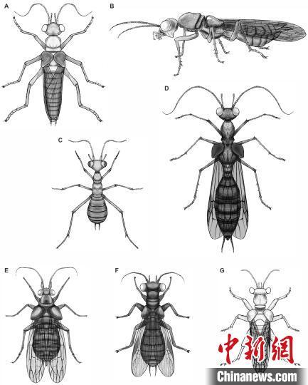 该项研究中,科研人员在缅甸琥珀中发现了一类极为特殊的奇翅科若虫,这类奇翅若虫整体的形态特征非常接近缅甸琥珀中的原始蚂蚁(蜂蚁类),且这类奇翅若虫的腹部有一定程度的收缩。此外,这类奇翅若虫的触角和腿部的形态、比例也非常接近蜂蚁。