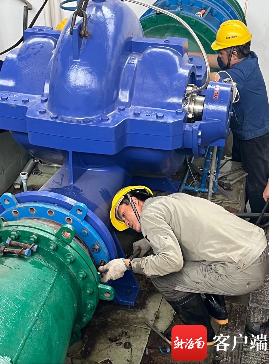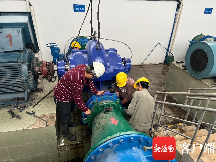 在米铺水厂的送水车间里,传来金属的敲打声,3名水厂工人正在对一台送水泵进行检修,他们在对一台“退役”的水泵进行更换,新的水泵将能提供更好的密封性。“我们水厂共有6台送水泵,4台使用2台备用,保障海口市的正常供水。”海口米铺水厂副经理叶猛说,米铺水厂有双电源供电线路确保送水泵的运行。