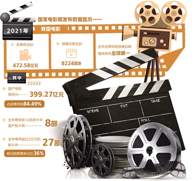 2021年,在新冠肺炎疫情持续冲击下,全球电影产业艰难前行。面对前所未有的困境和挑战,中国电影市场率先复苏。日前,国家电影局发布数据显示:2021年我国电影总票房达到472.58亿元,银幕总数达到82248块,全年总票房和银幕总数继续保持全球第一。这份来之不易的成绩显示出大银幕的活力以及国内电影市场动能的强劲,同时为全球影业复苏带来坚定信心。在成绩的背后,有哪些新现象值得关注?未来电影市场又将如何应对风险和挑战?