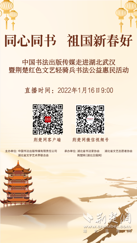 以手中的笔为人民书写、奉献笔墨真情。明天的开幕式后,全国书法名家和荆楚书法名家将分别前往武汉同济医院、武汉东湖新城社区、湖北省图书馆大厅,联动开展“同心同书·祖国新春好”写春联送 “福”字公益活动。全省各地书法家也将深入到社区、工厂、农村,组织开展写春联活动,公益书法辅导,点评作品等形式多样的小分队,用实际行动文化惠民,文艺为民,润心暖心。