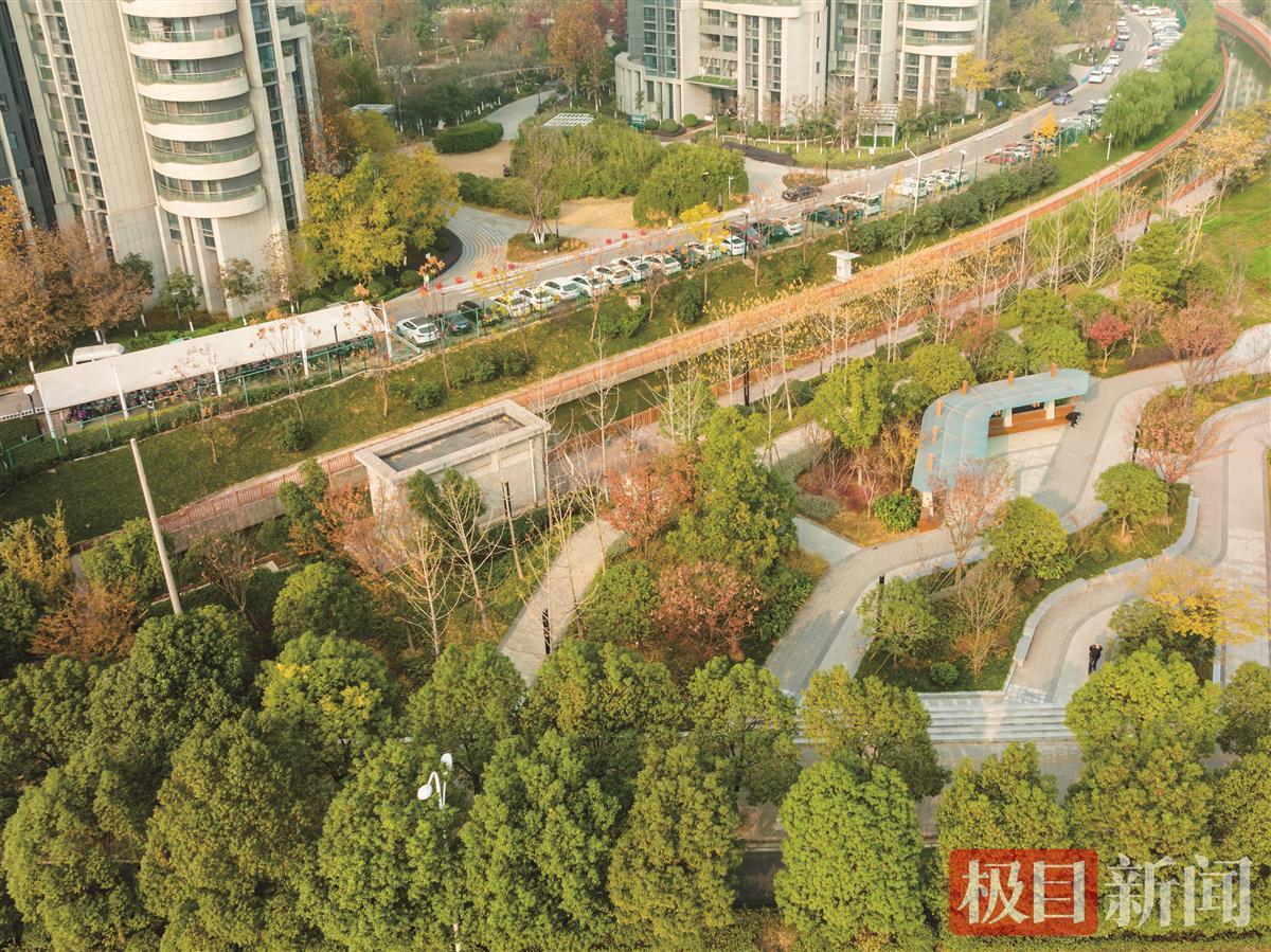 江夏区七星公园,它原是阳光大道与江夏大道交叉口的小游园,“做减法”后,空间疏朗,增设步道和亭子,添一份闲情逸致,还栽植三角枫、樟树等添彩。