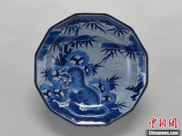 青花虎竹图十二角形盘。 上海博物馆 供图