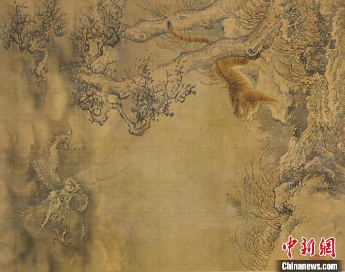与此同时,一楼电子屏还线上展示了4件文物,包括上博馆藏清代沈铨《花鸟走兽册》、清代福建漳州《招财纳福辟邪年画》,以及日本九州国立博物馆馆藏日本宝历十二年熊斐《虎图》与日本享和三年土方稻岭《猛虎图》。上博馆藏元代佚名《白描群仙图卷》则在三楼中国历代绘画馆展出。