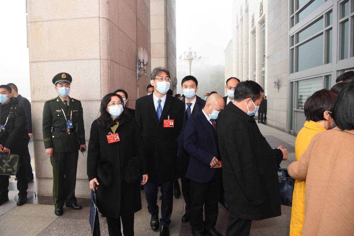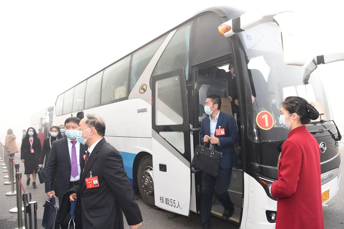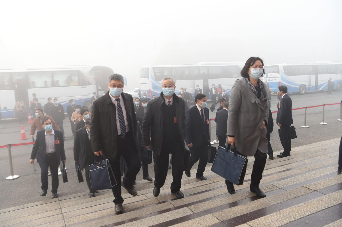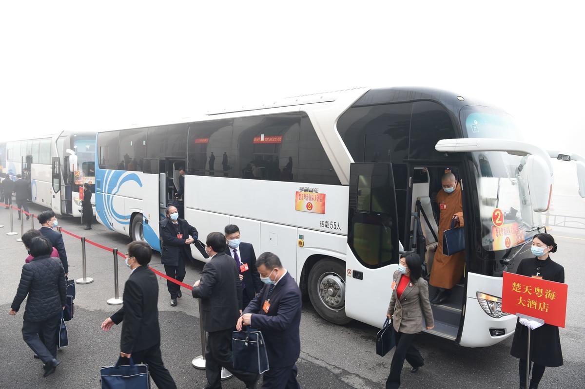 参加省政协十二届五次会议开幕大会的委员们抵达会场。(湖北日报全媒记者李溪摄)