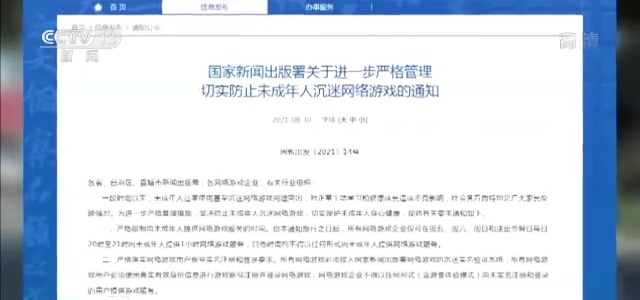 2021年8月30日,国家新闻出版署下发《关于进一步严格管理 切实防止未成年人沉迷网络游戏的通知》,针对未成年人过度使用甚至沉迷网络游戏问题,进一步严格管理措施。