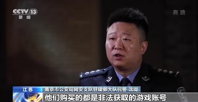 南京市公安局网安支队驻建邺大队民警 沈彻:他们购买的都是非法获取的游戏账号,这些账号大多的来源都是在网上通过木马,通过破解这些方式得到其他人正常使用的游戏账号。