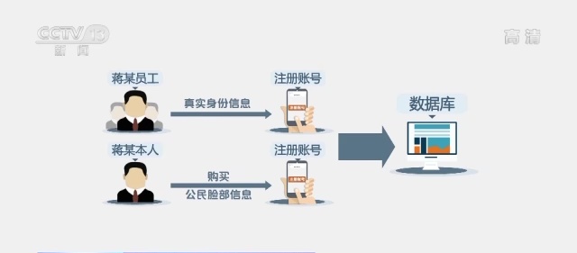 按照游戏公司的规定,一个自然人一般只能注册5个游戏账号。起初,蒋某让自己公司的员工以真实身份信息注册实名账号,接下来他又陆续大量购买包含公民脸部信息的证件号码,并用它们去注册游戏账号,搭建所谓应对人脸识别的“数据库”。