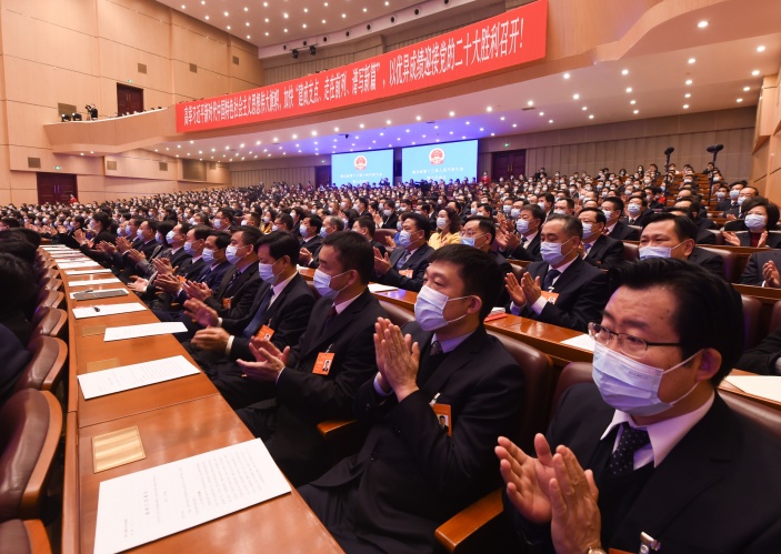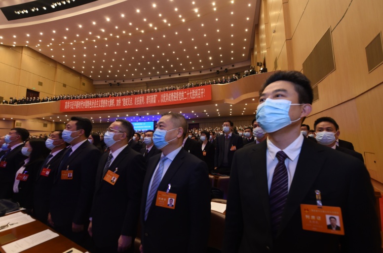 2022年1月20日上午,湖北省第十三届人大七次会议开幕大会现场。(湖北日报全媒记者何宇欣摄)