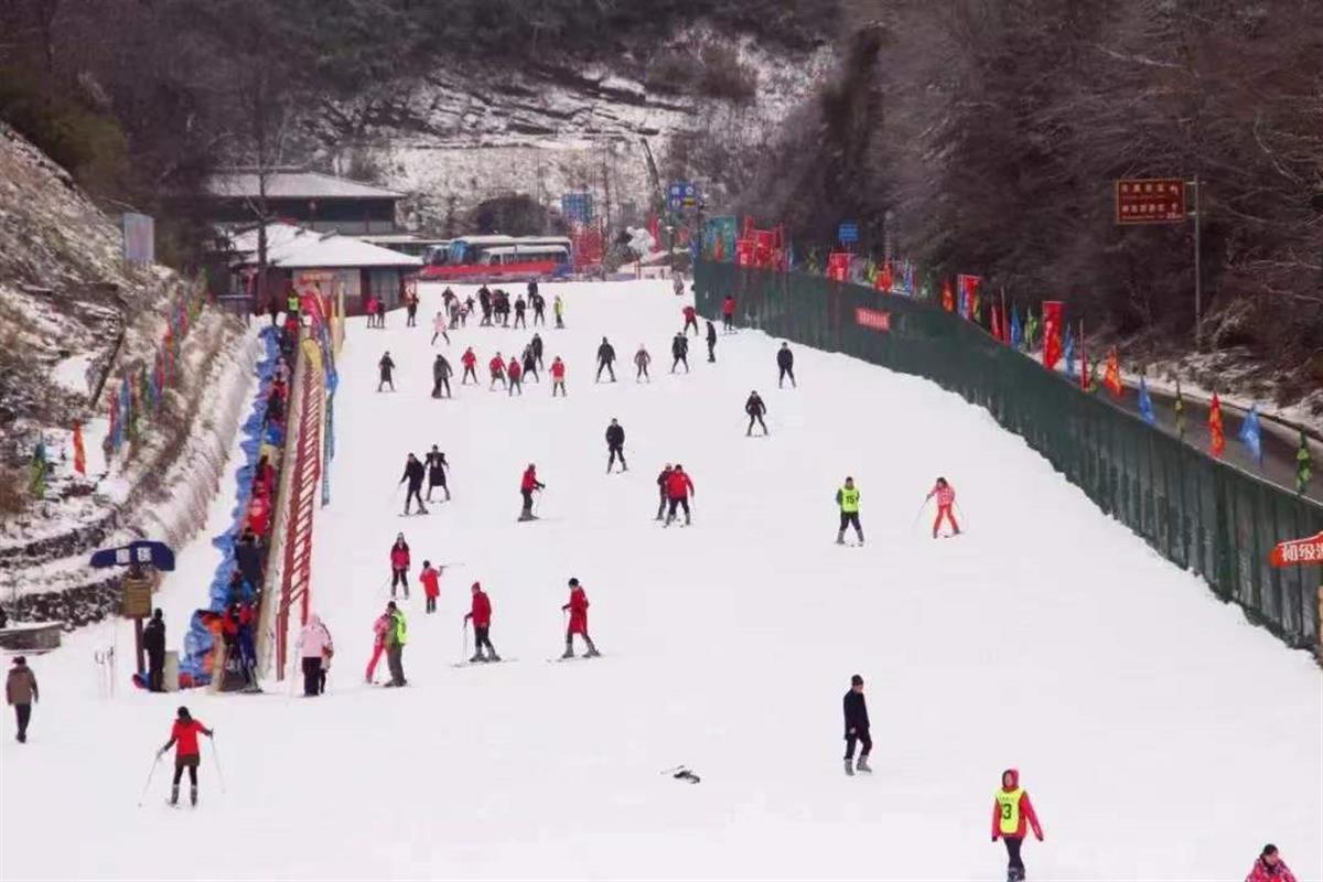 雪域面积约15万平方米,9条滑雪道,最大坡度30度,雪道配比合理,覆盖客群广泛(初级道4条、中级道4条、高级道1条);落差约150米,为湖北地区落差最大;雪道衔接流畅,雪道体验多样性强。尤其是初级滑雪者可实现轻松从山顶滑下平均坡度为7°,长度为1.5公里的“幸福大道”;配有一条25个轿厢的高速拖挂式变速缆车,让游客快速平稳到山顶,缩短滑雪等待时间;四条平均300米的魔毯,可以满足不同人群的多样化滑雪体验;占地2000平方米的雪具大厅,配置进口滑雪双板、单板、雪鞋3500套,并配置有儿童雪具,可同时容纳2500人滑雪。雪具大厅二楼配备自助餐吧和冷热饮柜台,独具风味的土家特色美食满足滑雪游客的各类需求。